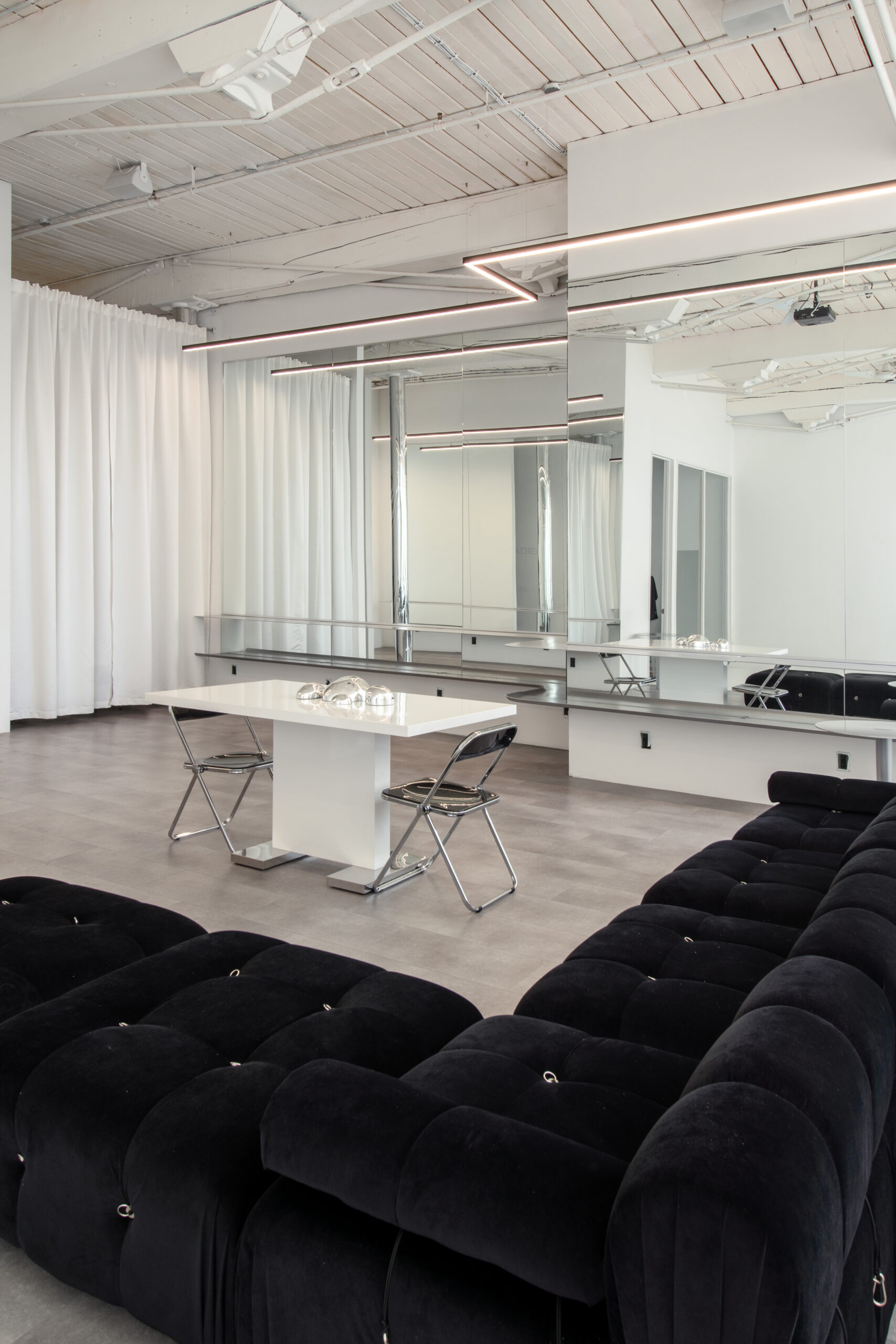 An elegant, all-white, modern studio with Parisian charm.